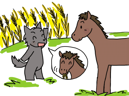 — Merci, monsieur le loup. Mais si tu aimais l’orge, est-ce que tu me l’aurais laissée ? Je ne pense pas. Tu es gentil avec moi parce que ça ne te sert à rien.